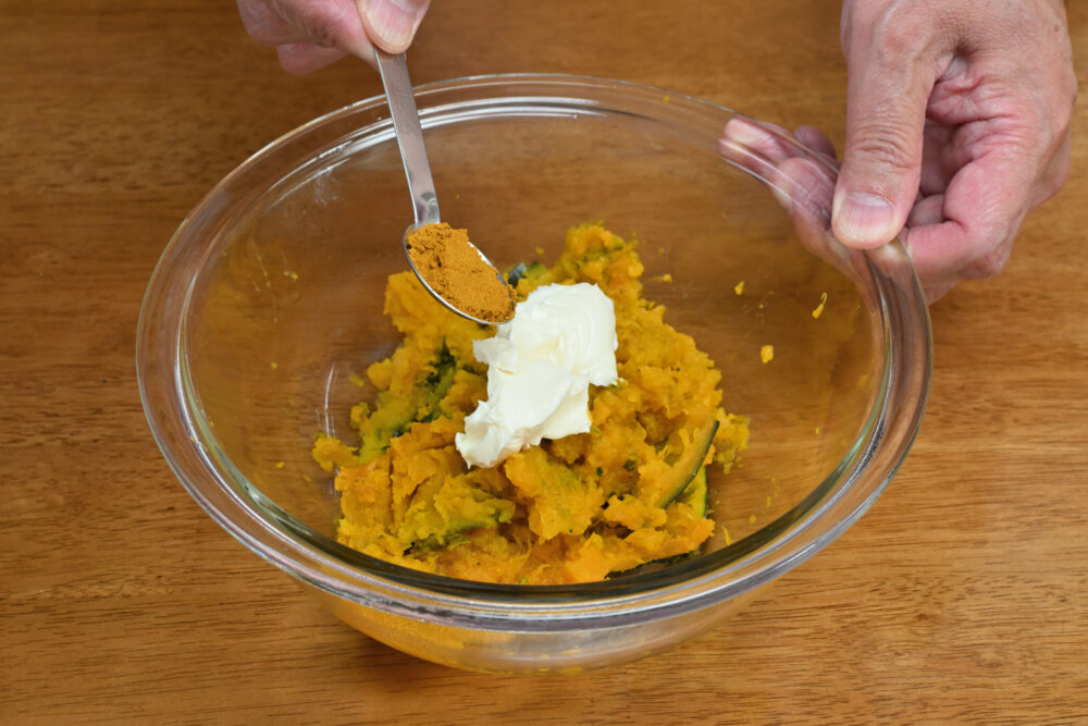 ◇冷凍かぼちゃの種類によって電子レンジの加熱時間は調整してください。
