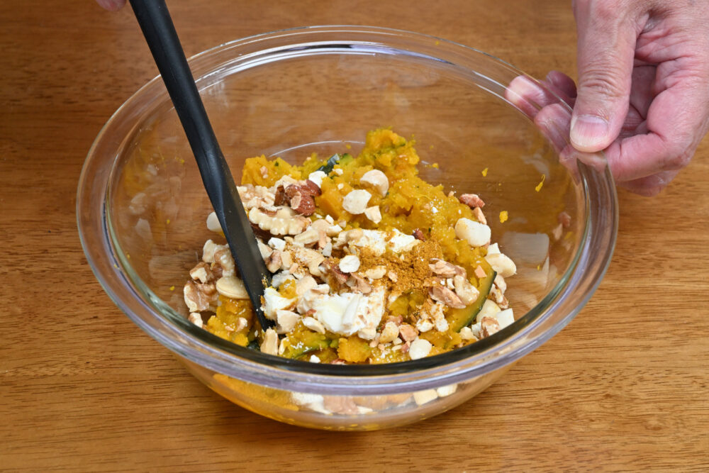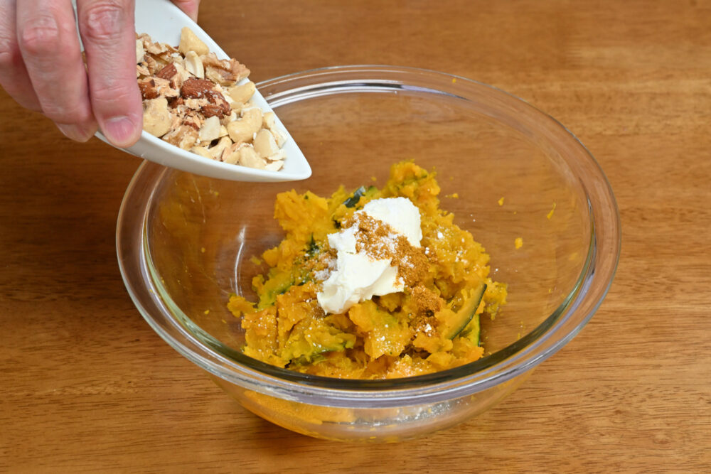 ◇ミックスナッツはあらかじめ細かく砕いておきましょう。