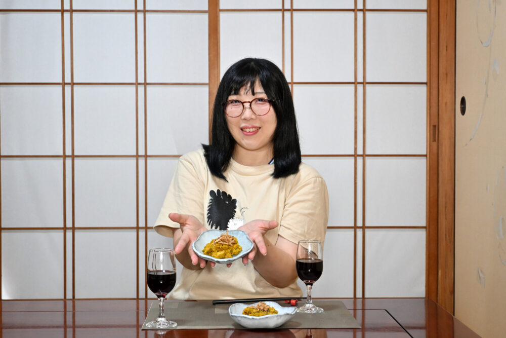 「様々な食感があってホントに楽しいサラダです。かぼちゃサラダなので柔らかいだけのイメージでしたが、ミックスナッツの各々の食感からフライドオニオンの食感までバラエティー豊かで、ハロウィンに相応しい一品だと思います。カレー風味もgoodで、これはおつまみはもちろん、お子さんも喜んで食べてくれるお料理ですね。ハロウィンの日に、何も言わずに食卓に並べてママもお子さんもビックリさせて欲しいと思います。これは赤ワインで楽しむのがベスト!cheers♫」