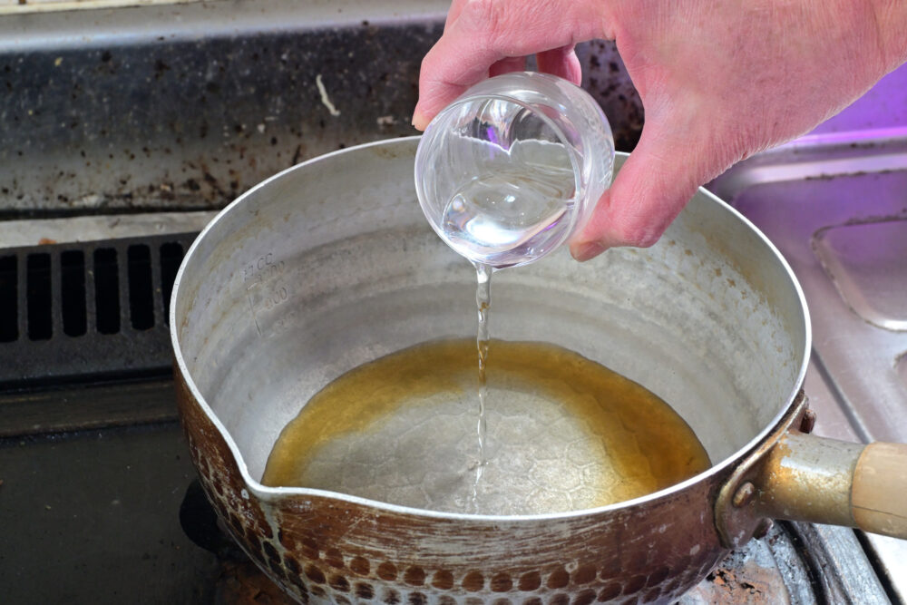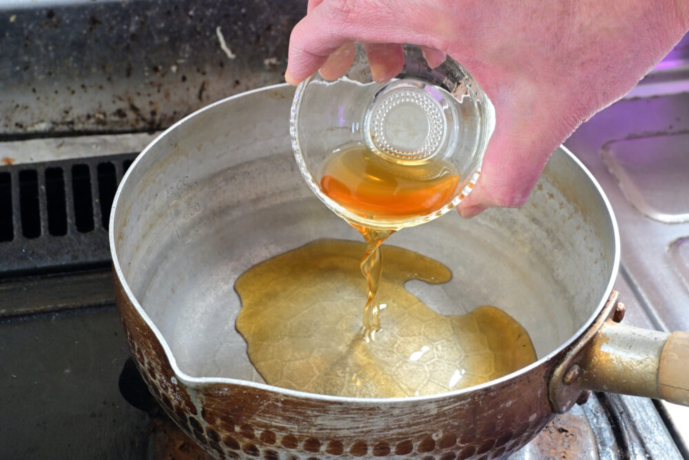 2. 鍋にみりんを注ぎます。