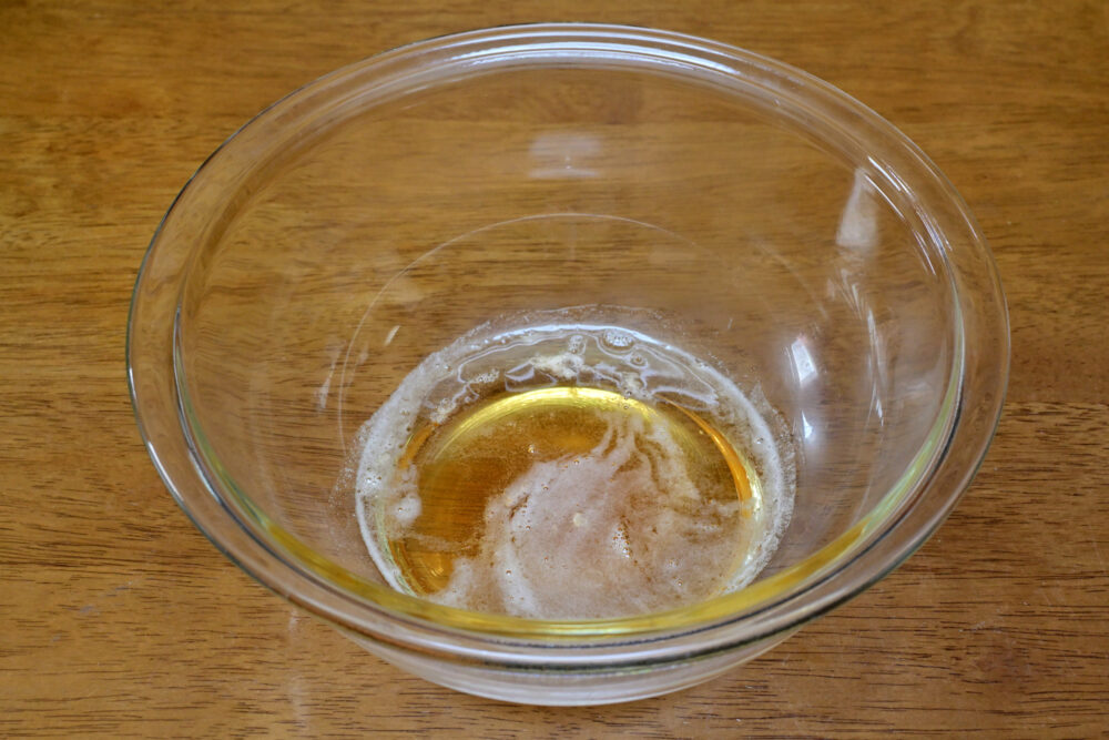 8. 続いてオリーブオイルを加え、しっかり混ぜ合わせます。
