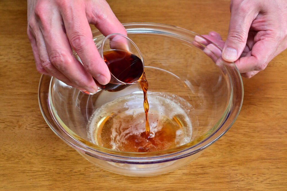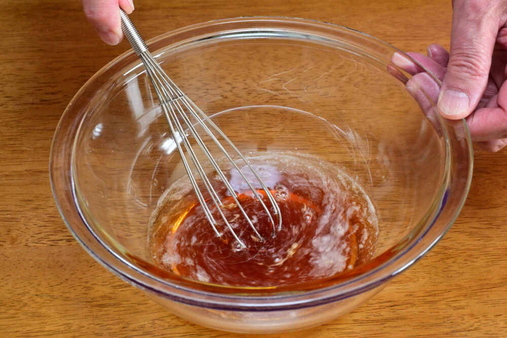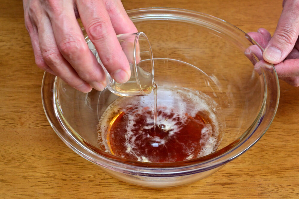 5. さらに米酢を加え、しっかり混ぜ合わせ漬けタレを調えます。