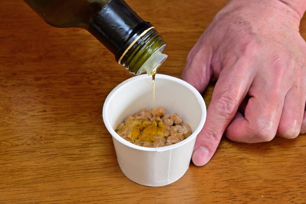 ◇納豆の匂いが苦手な方にはオリーブオイルの量を増やしてください。