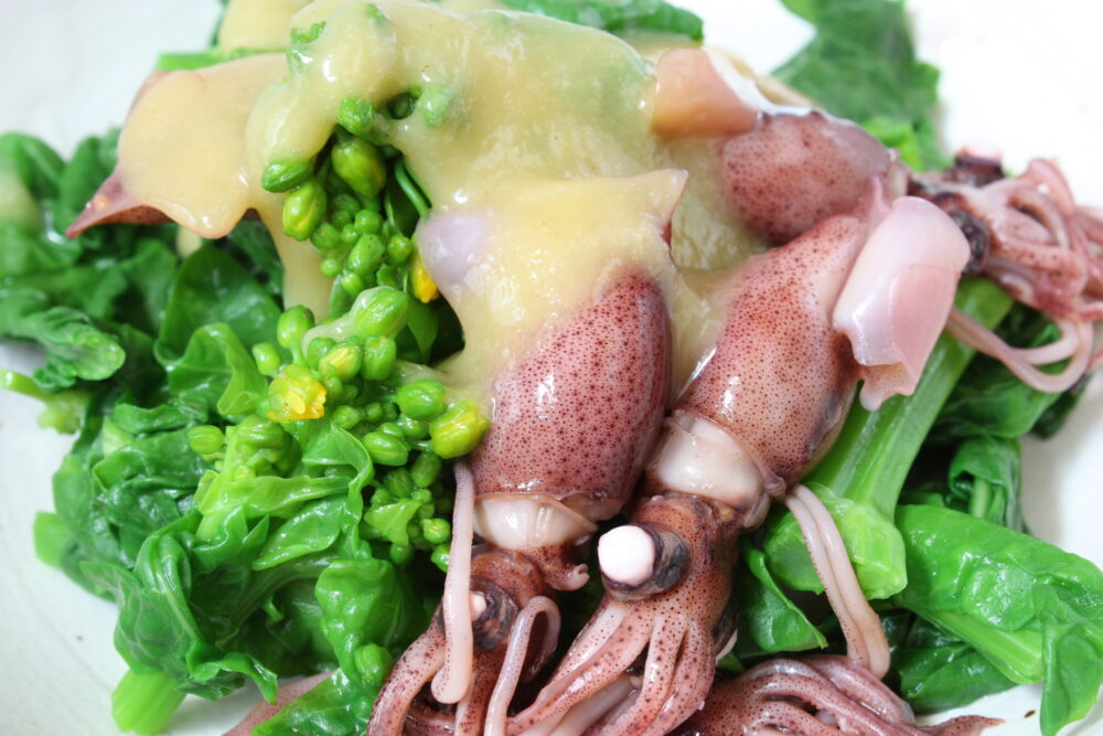 生のホタルイカは適切な処理がされておれば刺身でも楽しめます。身の甘みを感じられ、まさに春の味覚の代表の一つです。また、生のホタルイカを出汁醤油に漬けこんだ沖漬けも絶品です。一方、加熱をしたホタルイカは、酢みそ和えや煮物、炒めもの、炊き込みごはんなど、幅広い料理に活用できるのが魅力です。