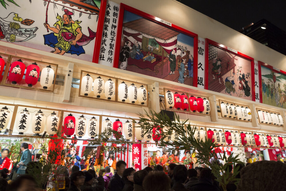 七福神の一人である「戎神」を奉る年初めのお祭りです。参拝者は笹に小判や米俵などの縁起物をつけ商売繁盛を願います。関西では「えべっさん」と呼ばれ、1月9日~11日まで各地の戎神社で盛大に開かれ大勢の参拝客が訪れます。商都大阪を代表するのは浪速区の今宮戎神社では毎年、福娘が選ばれ縁起物の笹や吉兆を扱います。また、戎神社の総本社・西宮神社では1月10日の朝6時に行われる「開門神事」が有名で、230mの参道を駆け抜け、本殿に一番乗りした上位3名が福男と認定され、商売繁盛の福を分かつ存在の栄誉を担います。